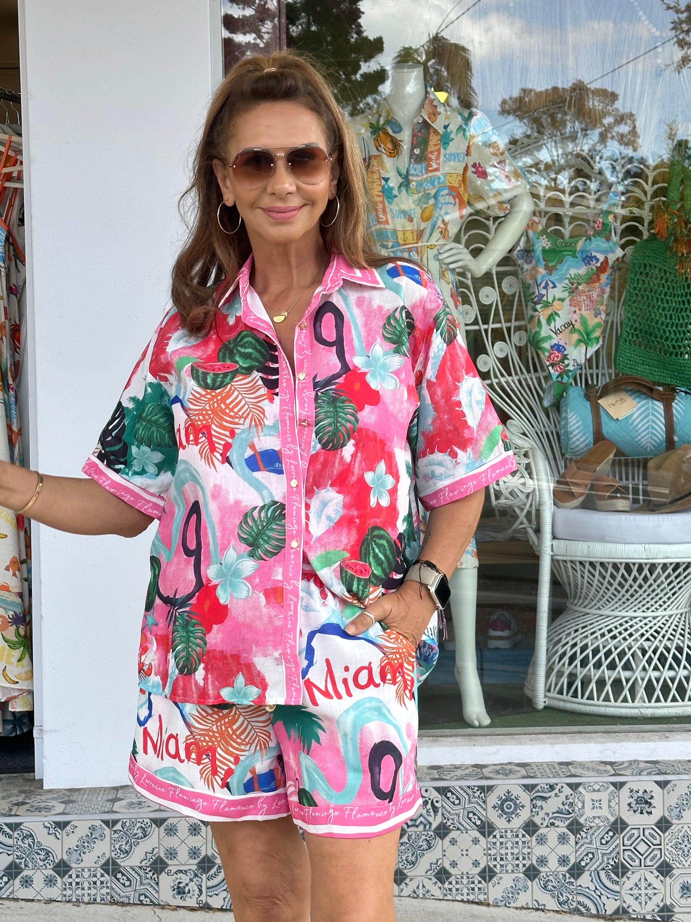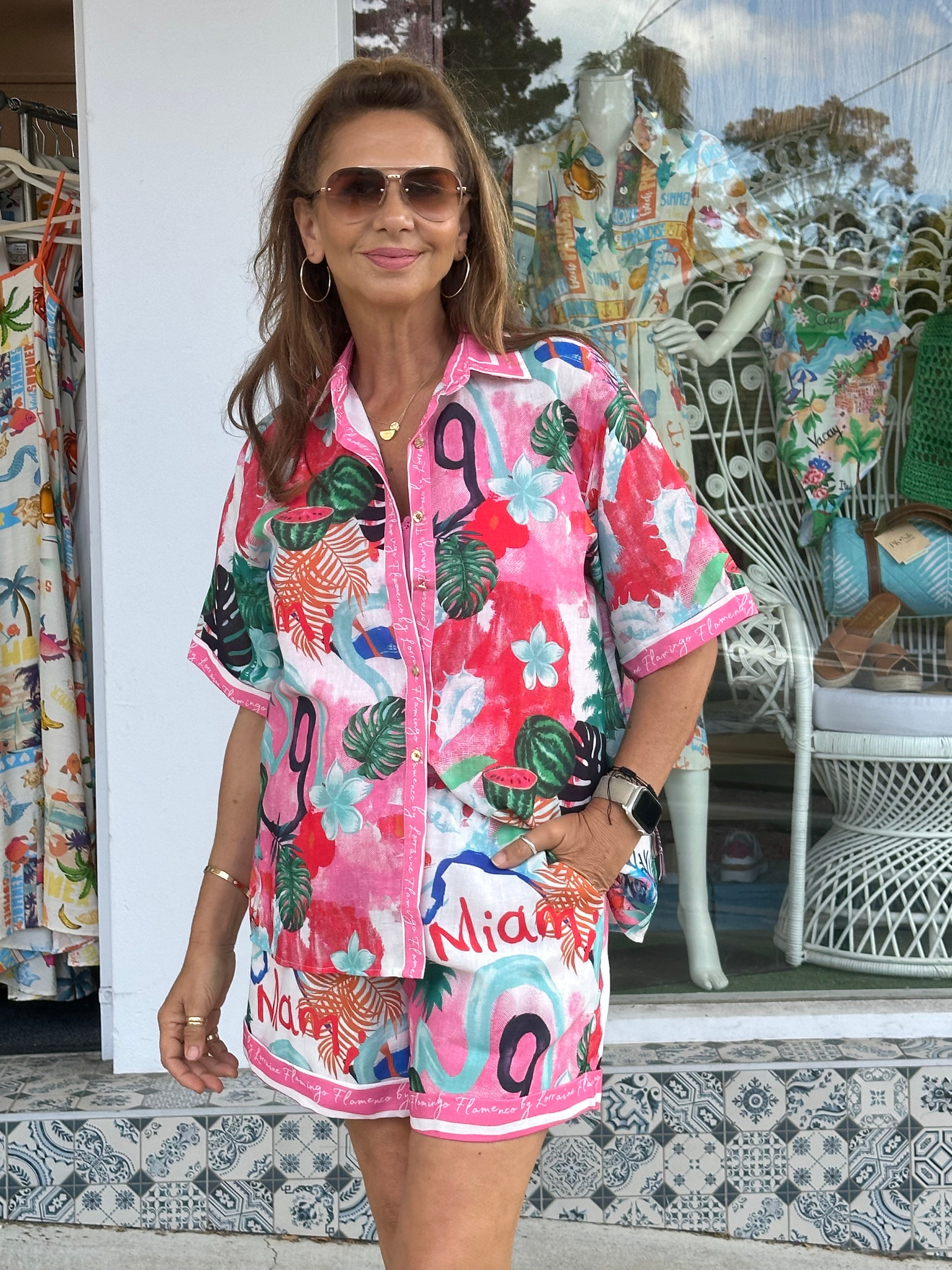 • Flamingo and Palm Print