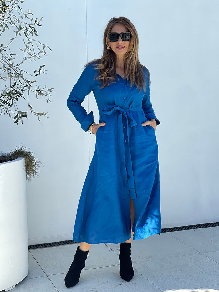 Fleur Linen Dress - Blue