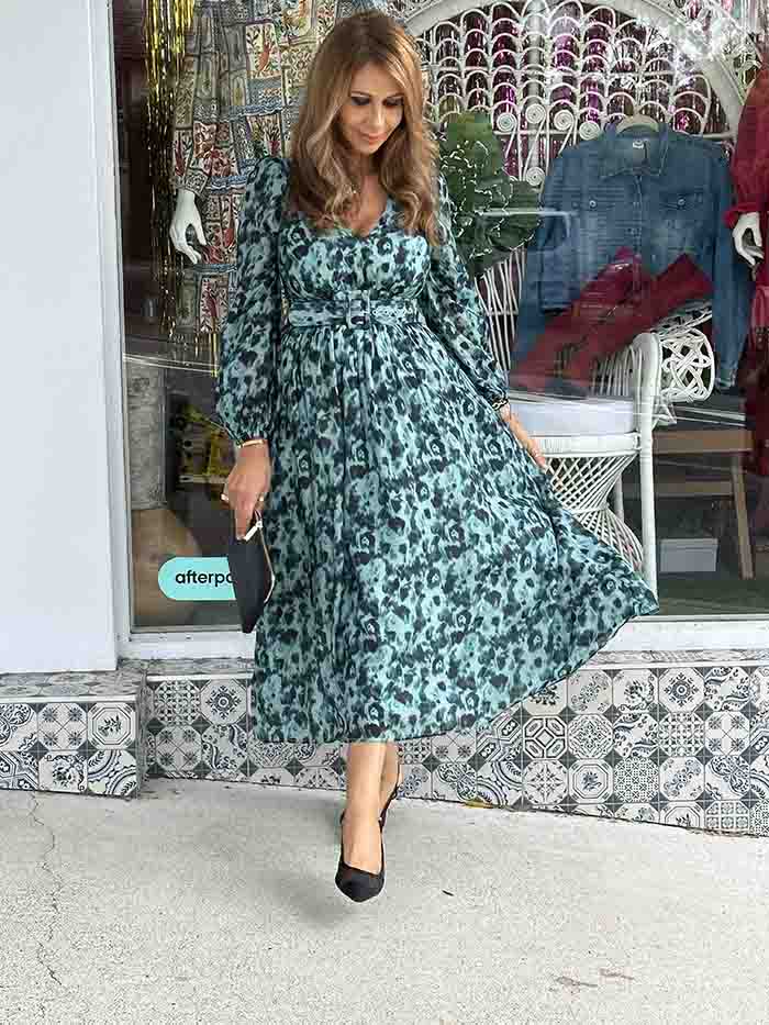Celeste Midi Dress - Teal Leopard