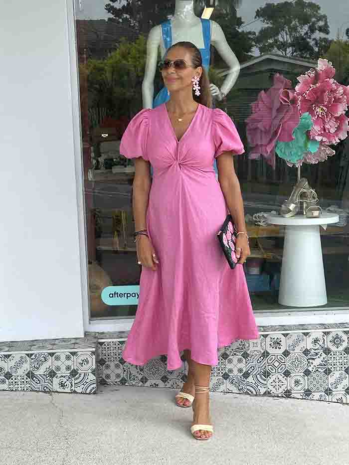Candy Pink Linen Twist Maxi Dress