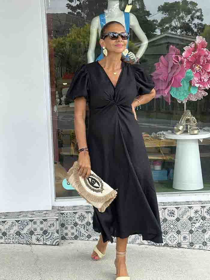 Black Linen Twist Maxi Dress