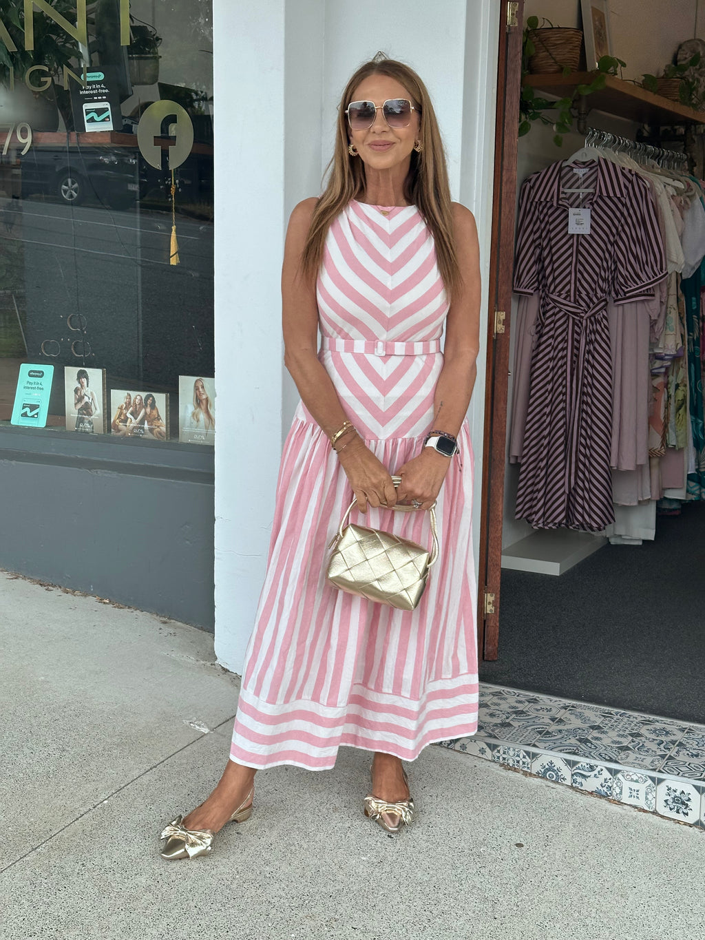 Bianca Stripe Dress - Blush and Choc