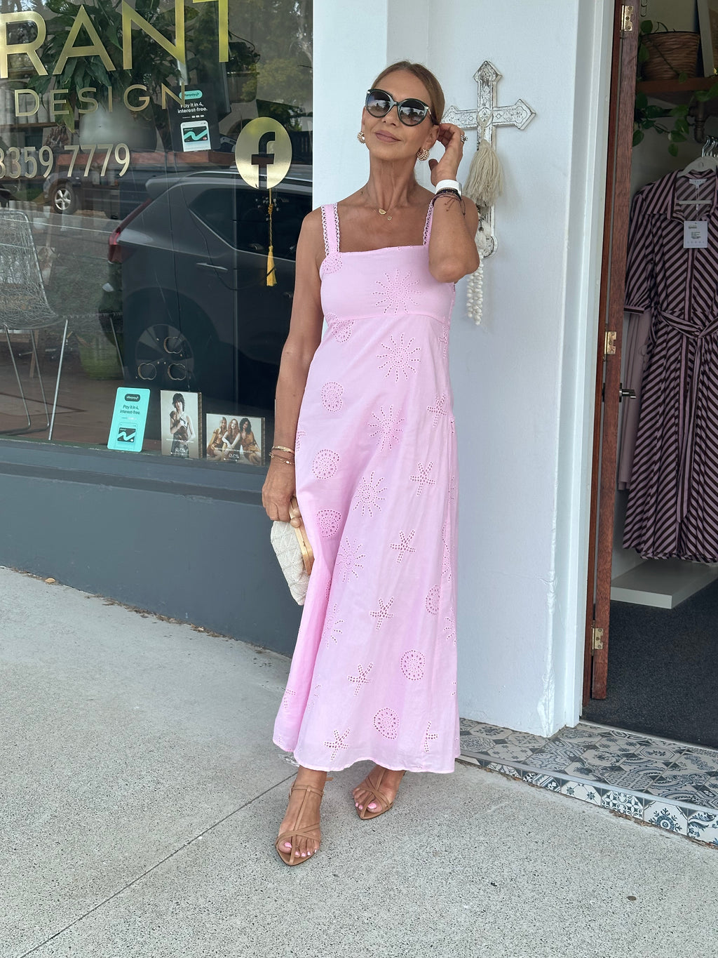 Antibes Broderie Anglaise Maxi Dress - Pink