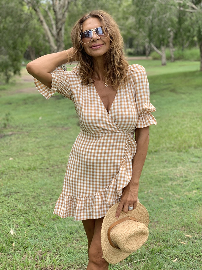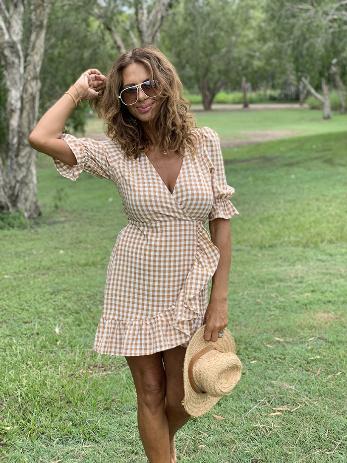 Caramel Gingham Mini Dress