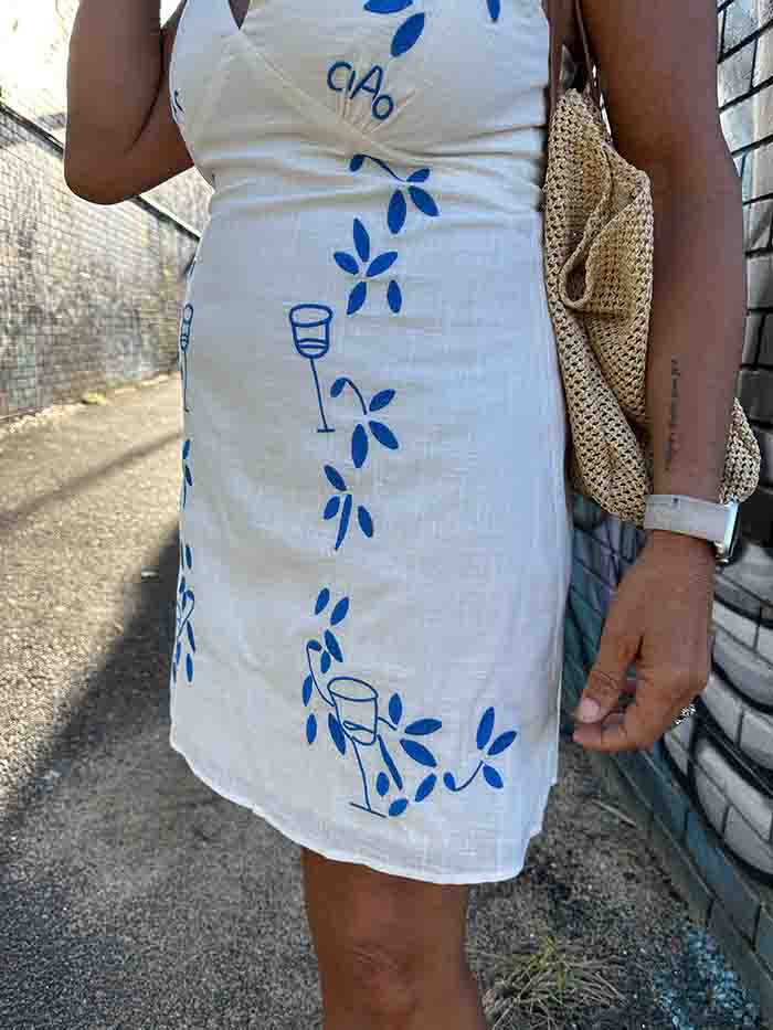 - Ciao embroidered on bodice