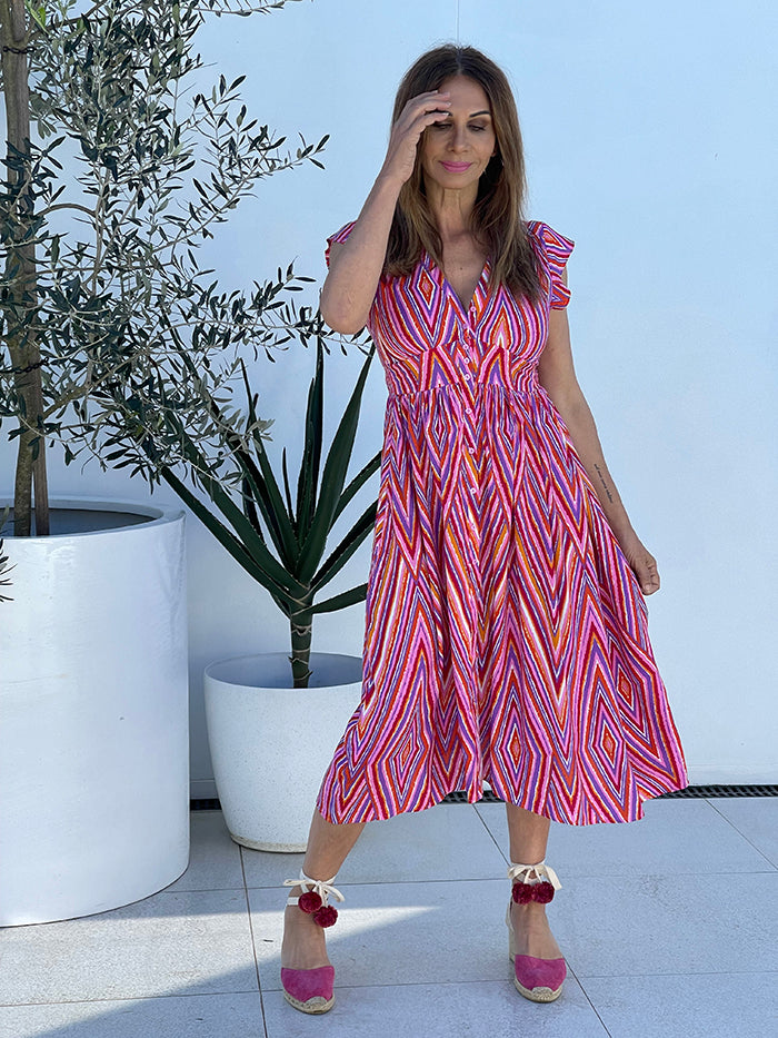 - Pink, hot pink, orange and purple print