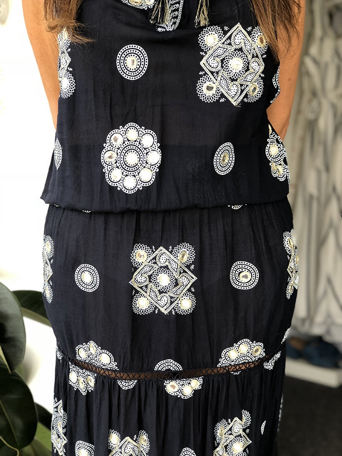 - Black with white mosaic print