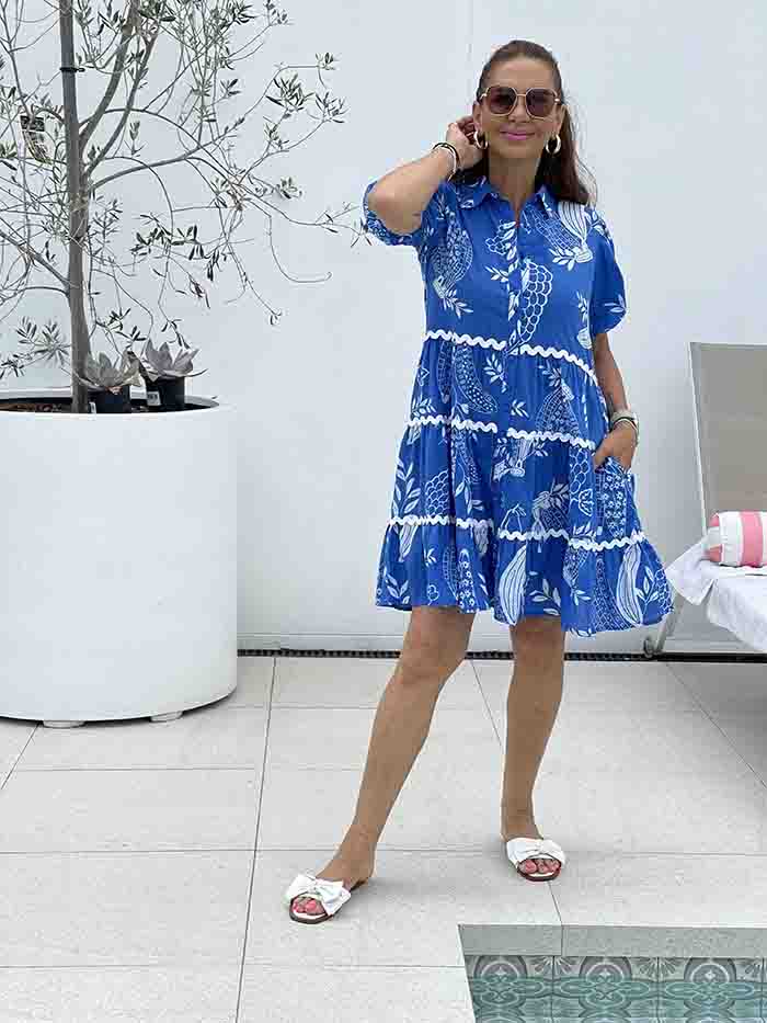 Santorini Days Shirt Dress - Blue