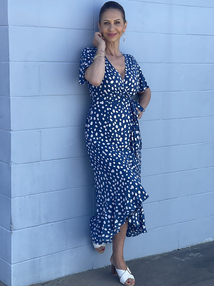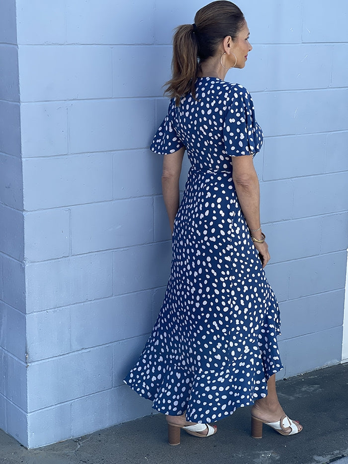 Serei Wrap Dress - Navy Spot