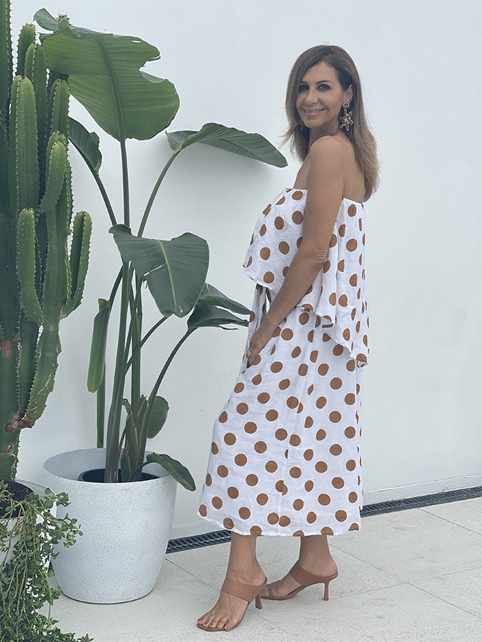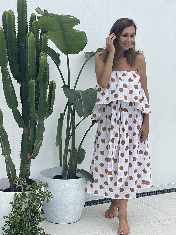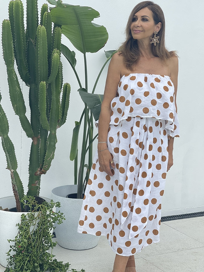 Sorrento Dress - Tan Polka Dot