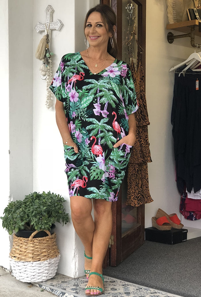 Gaby Dress - Black Flamingo