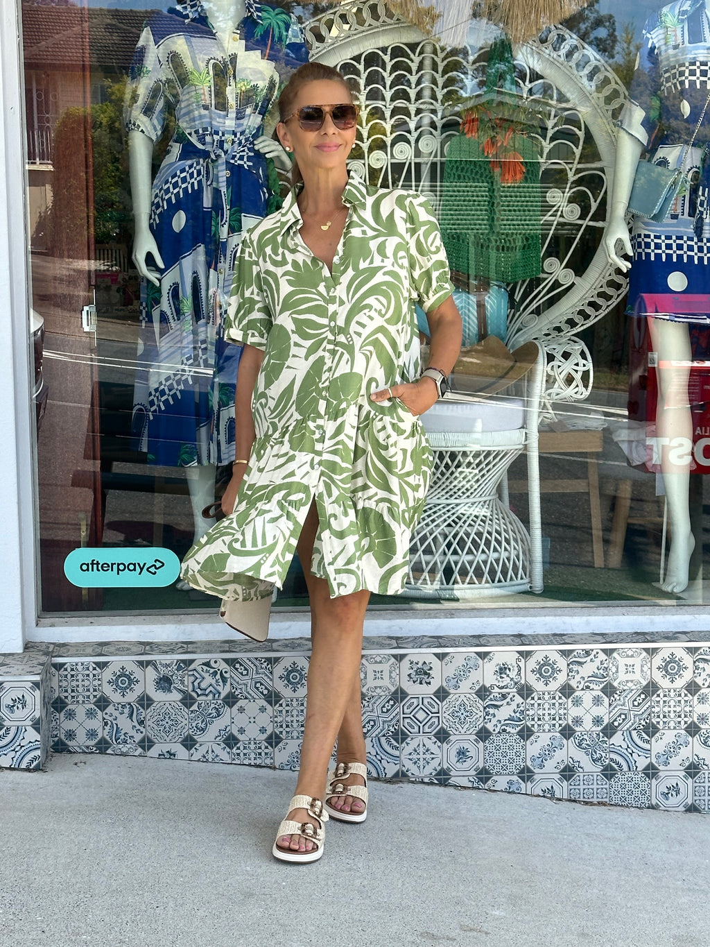 Domi Green Print Dress