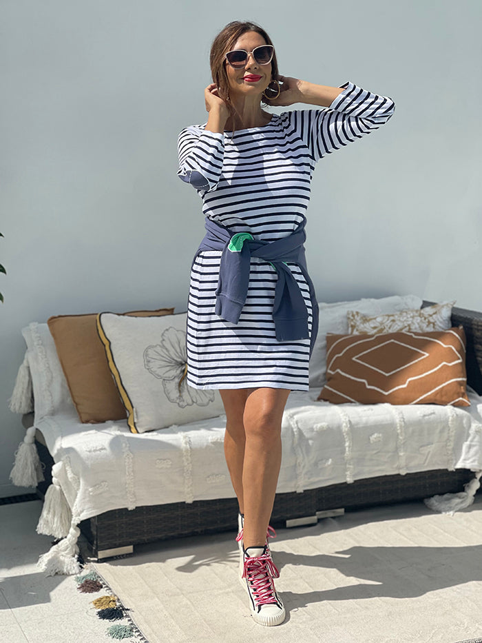 Breton Organic Cotton Dress - Stripe Navy