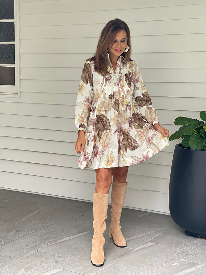 Lyra Pintuck Linen Dress - Soft Floral