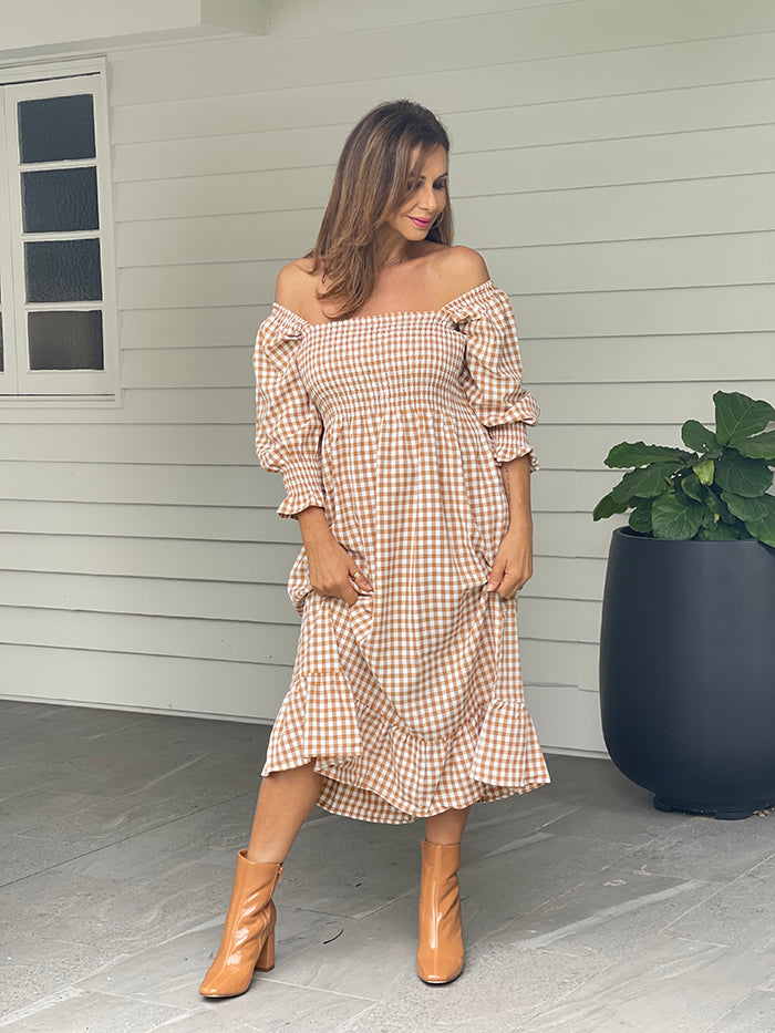 Caramel Gingham Maxi Dress