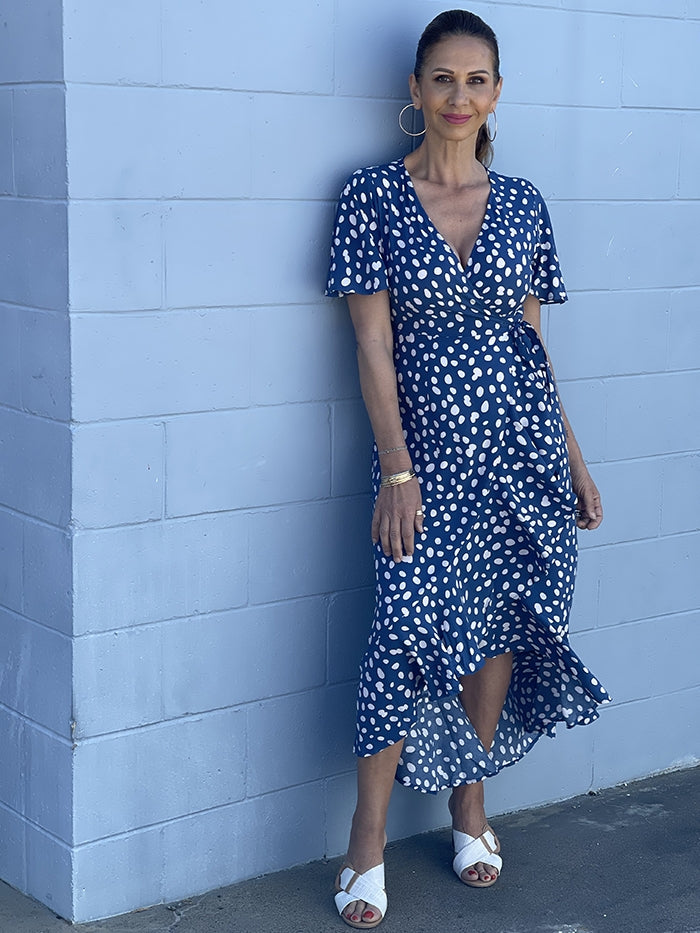 Serei Wrap Dress - Navy Spot