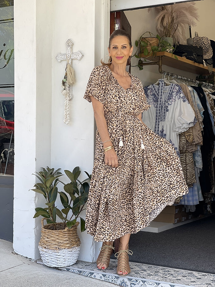 Ranah Dress - Soft Caramel Leopard