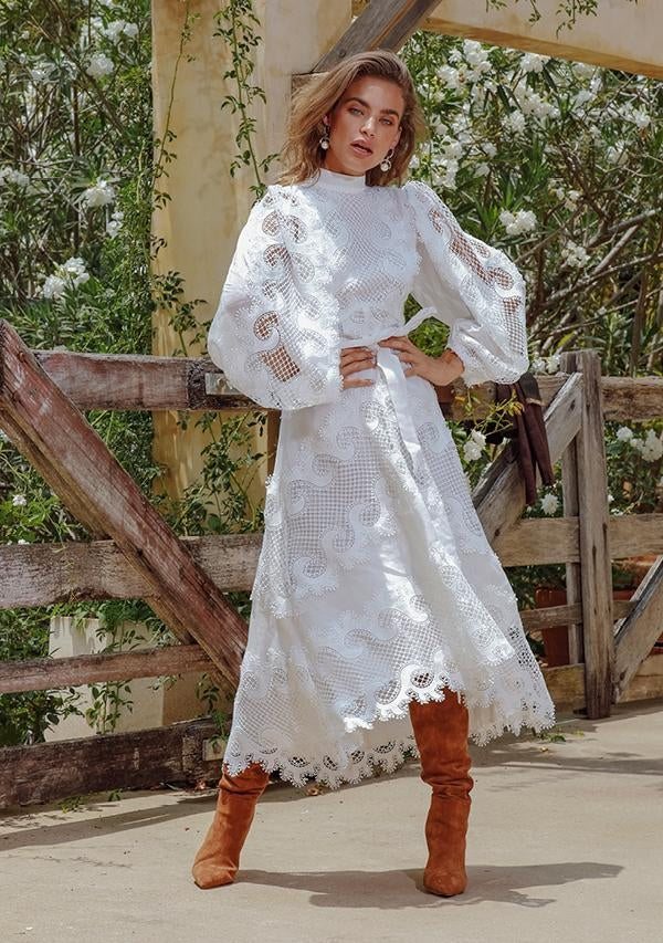 Victoriana Lace Midi Dress - White