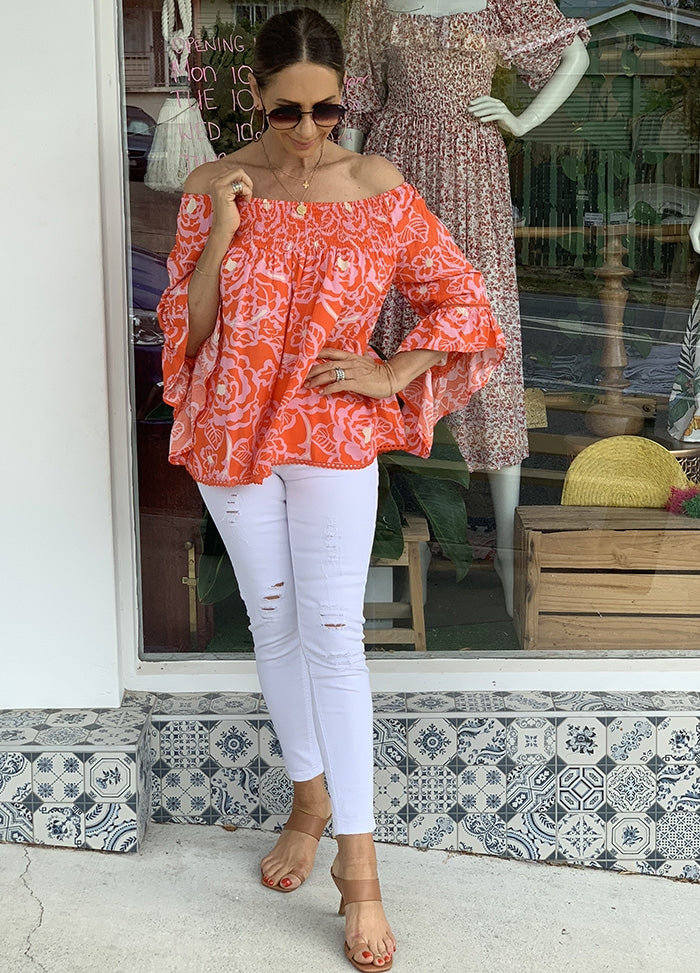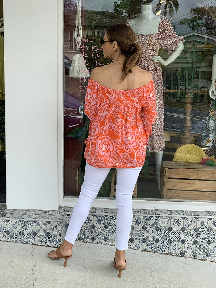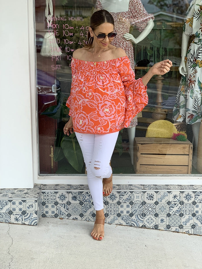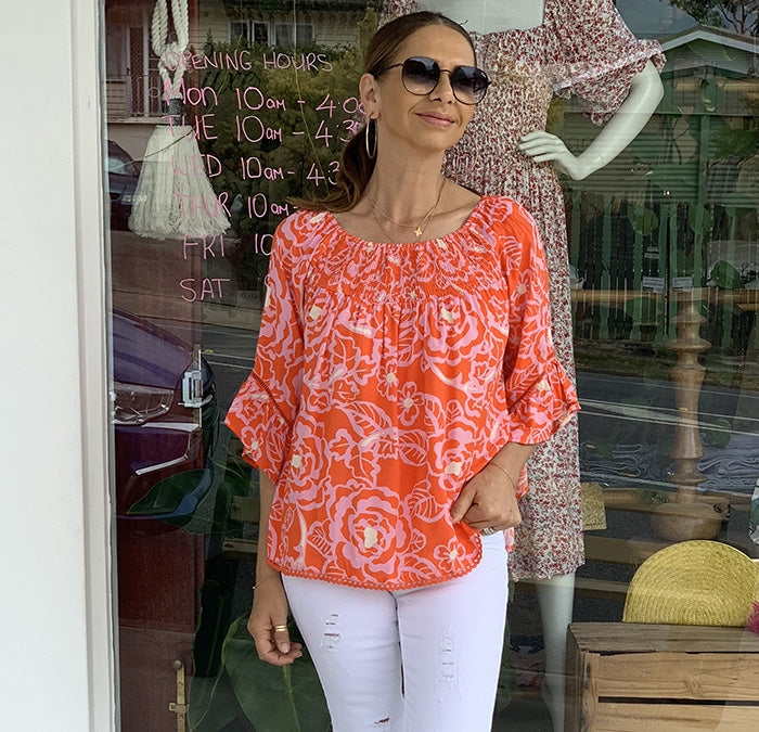Lola Top - Orange and Pink Floral