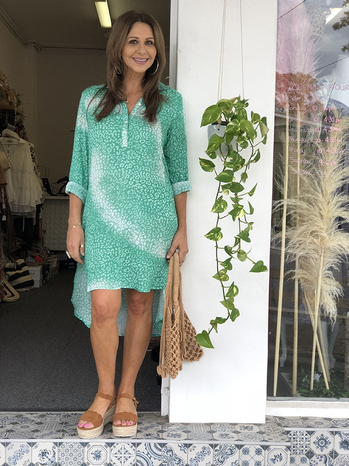 Ivey Short Dress - Green Print
