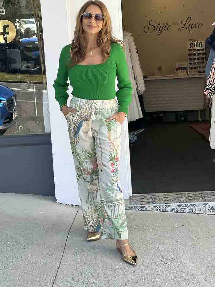 Square Neck Ribbed Knit Top - Green