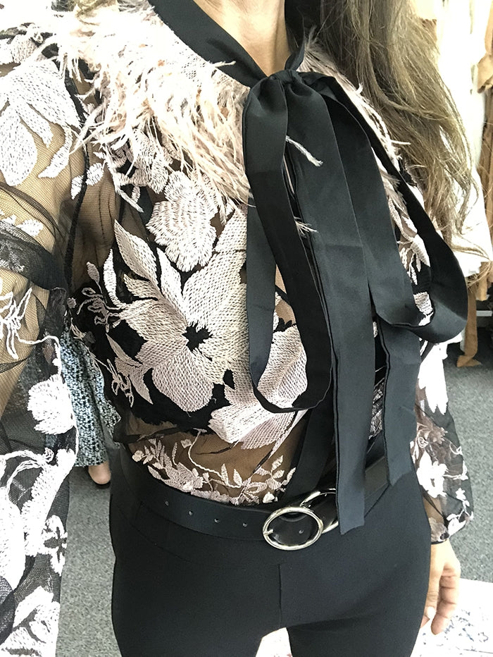 Suset Feather Collar Blouse - Blush and Black
