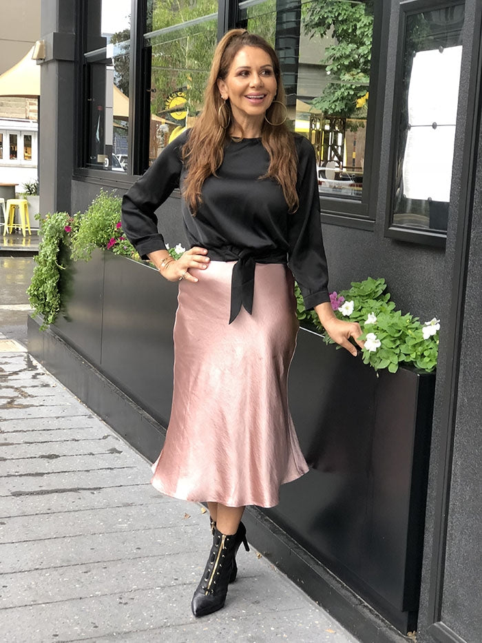 Satin Tie Front Top - Black